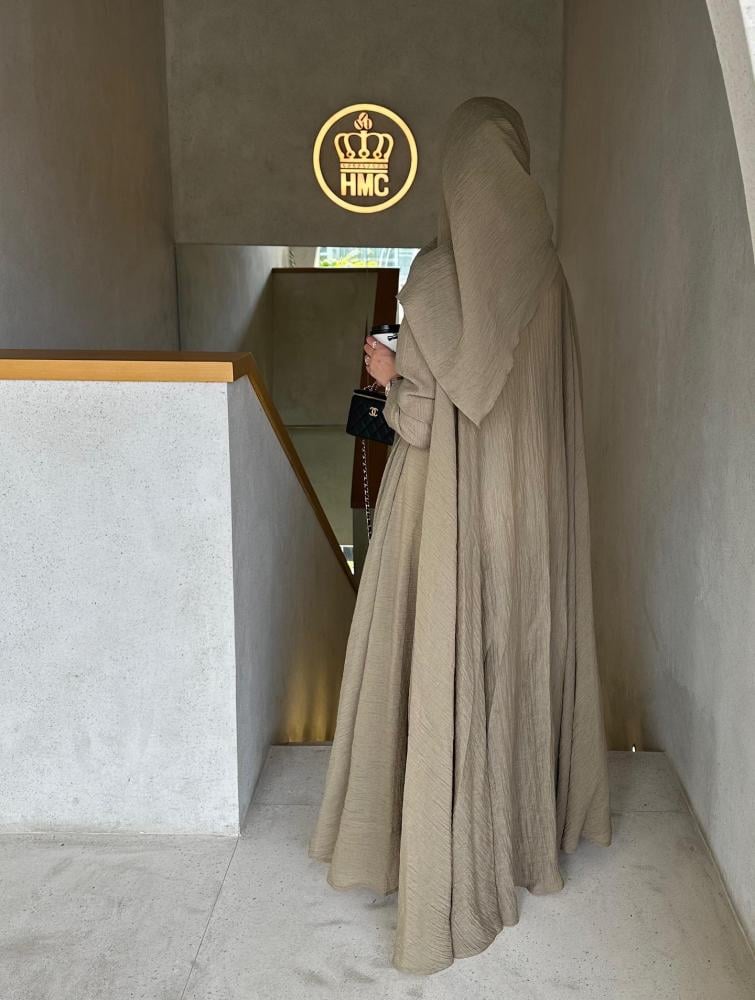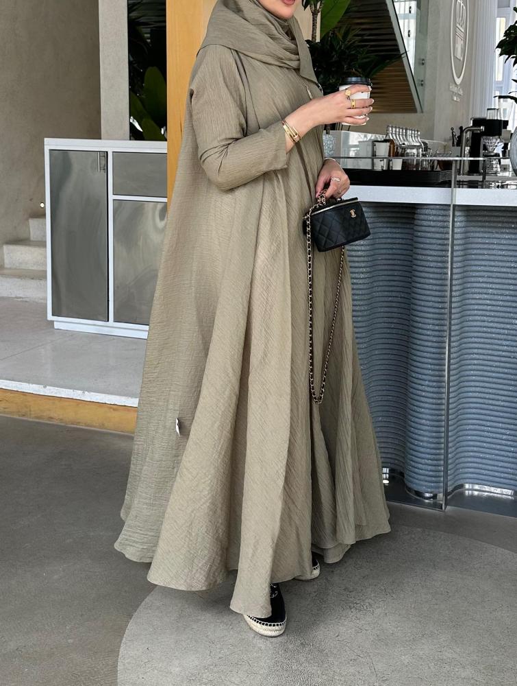 عبايتنا الجديدة بقصة تربل كلوش تعطيك وسع وجمال بالحركة، وخام لينن كريشه يبرد عليك حتى بأحر الأيام!