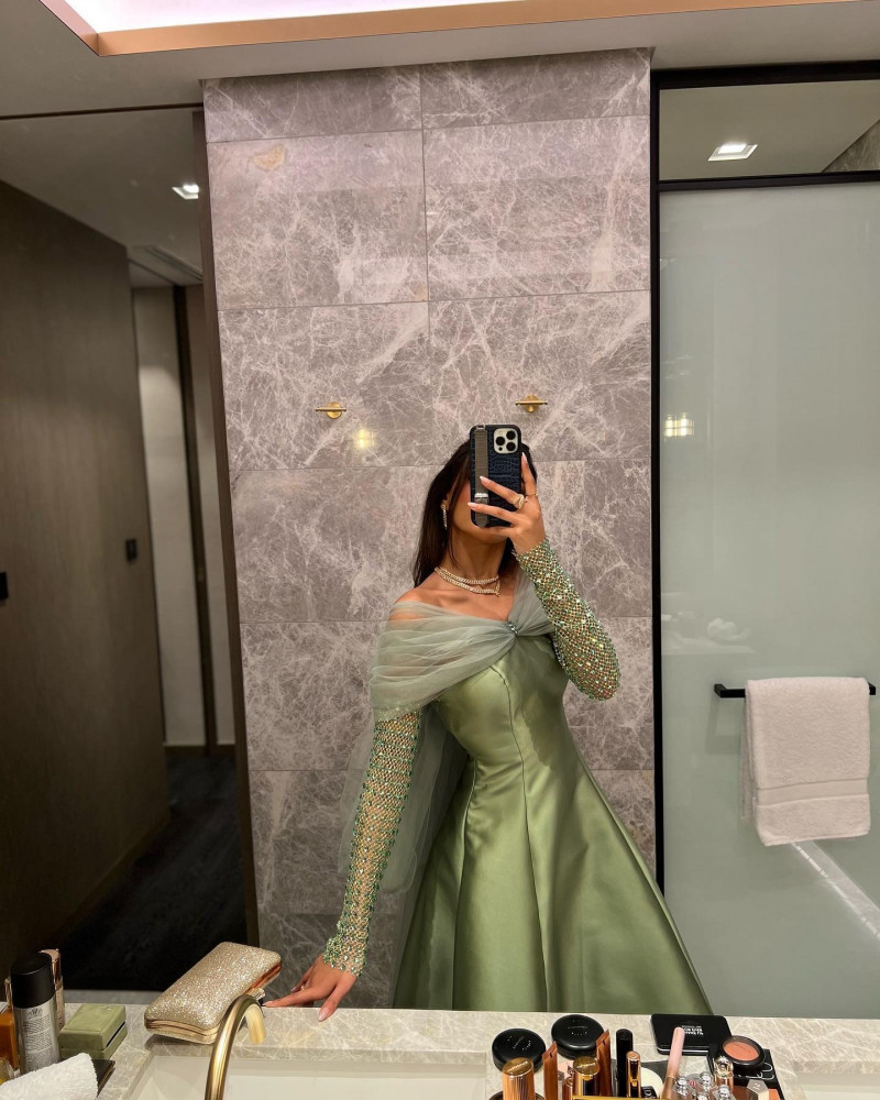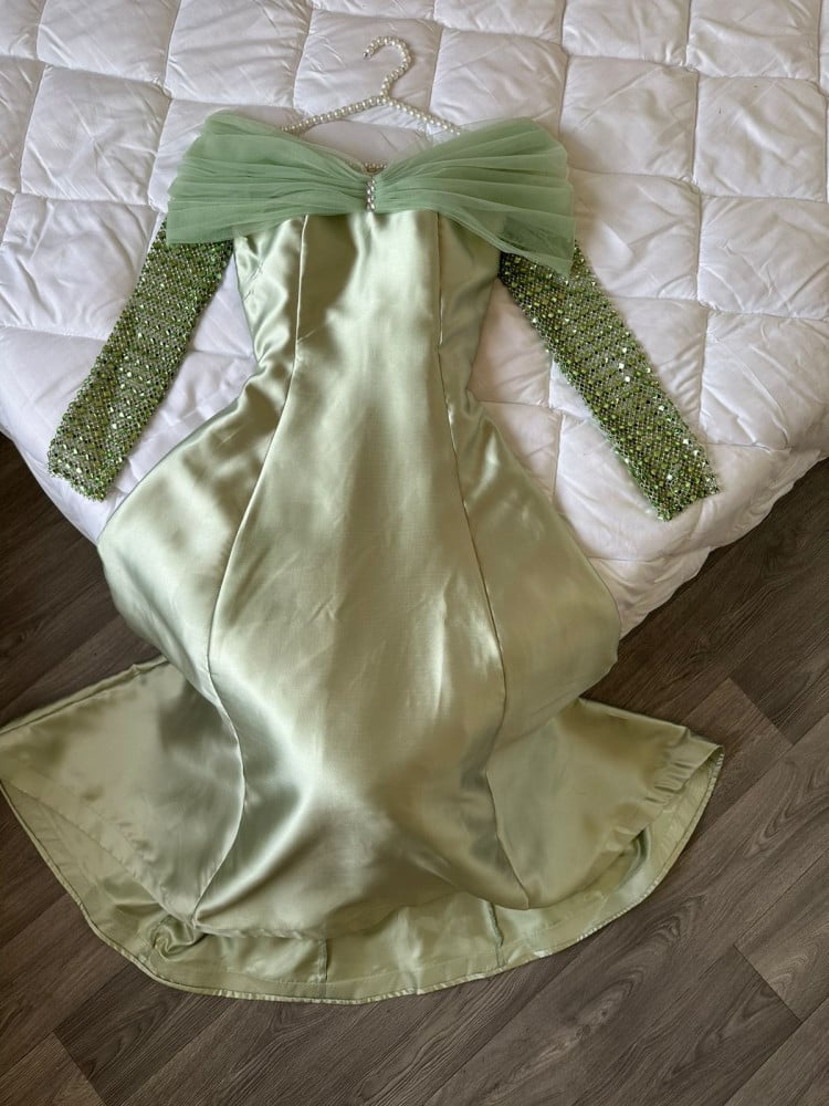 فستان الميكادو بستاشيو فخم مع تل عند الصدر كلوش